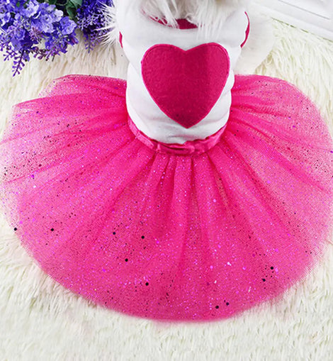 Pet Dog Love Heart Sequins Gauze Small Dog Lace Skirt Princess Tutus Dress Cat Rose Red Clothes Dog Dresses Pet Supplies
