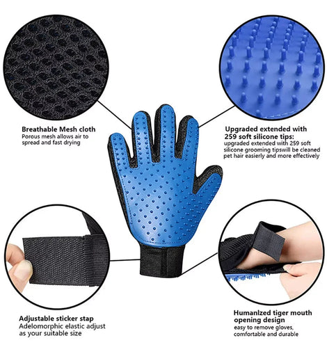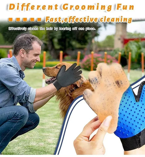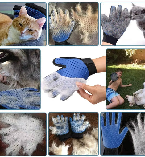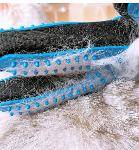 • Pet Grooming Kit for Dog Cat Rabbit Fur 2 Sided Grooming Brush Bath Cleaning Glove De-Shedding De-Matting Pet Hair