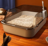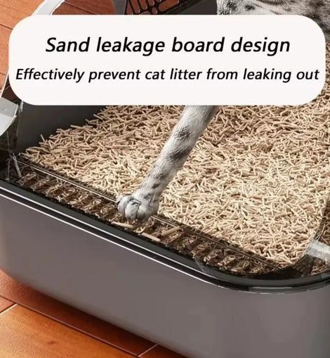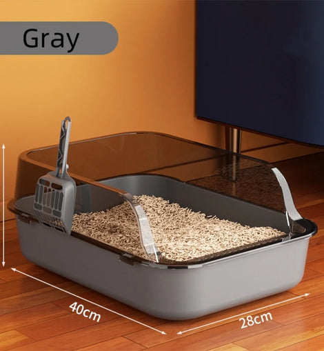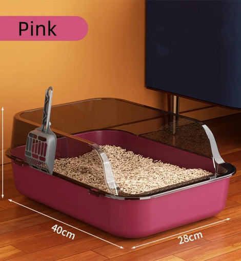2.【Easy to Clean 】: Open Tray is removable ,High sided cat litter tray, simple structure, detachable design, easy to clean, and reusable.