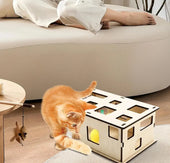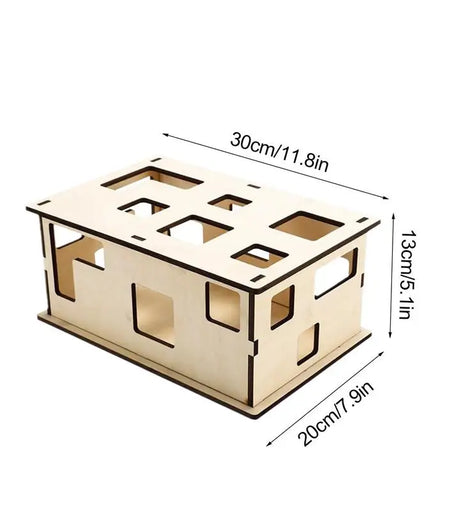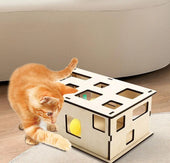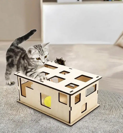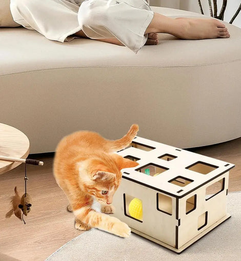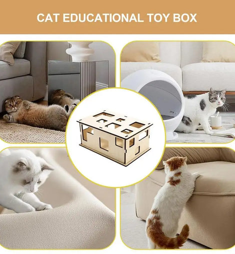 • Cat Treat Puzzle Wooden Cat Educational Toy Box Multi-hole Interactive Enrichment Scratching Board Boredom Relief Stimulates