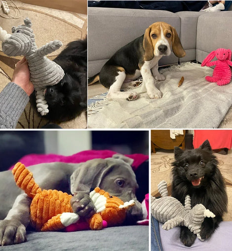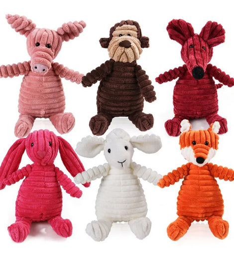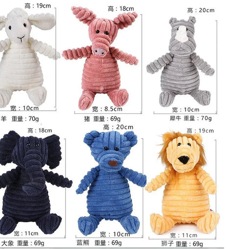 • Plush Dog Toy Animals Shape Bite Resistant Squeaky Toys Corduroy Dog Toys for Small Large Dogs Puppy Pets Training Accessories
