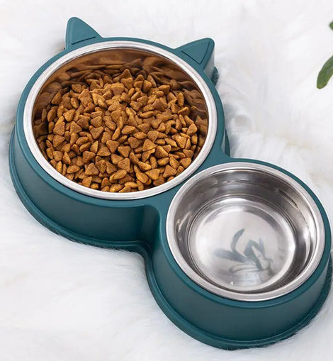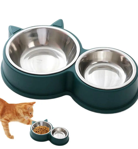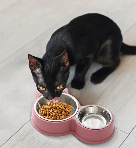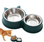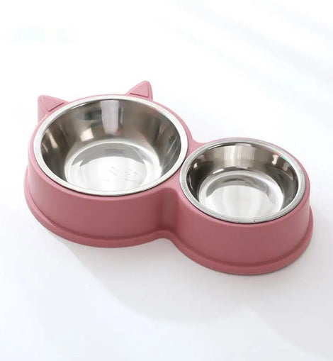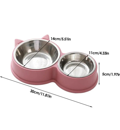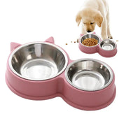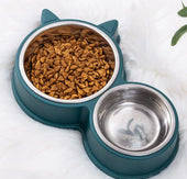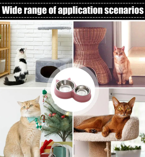 • Stainless Steel Cat Bowls Cat Ear Shape Removable Pet Cage Bowl Water And Food Feeder Thickened Puppy Licking Toys Pet Supplies