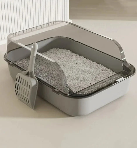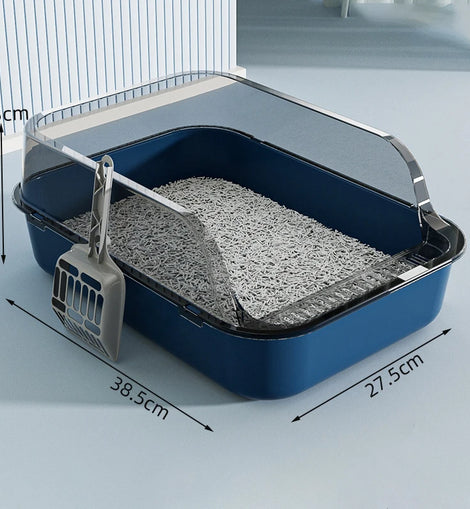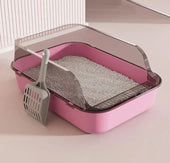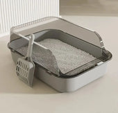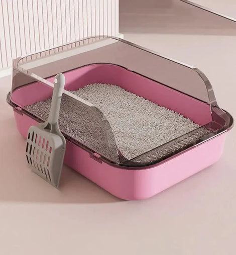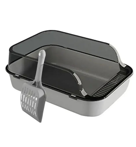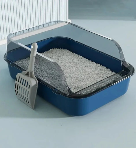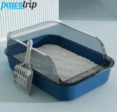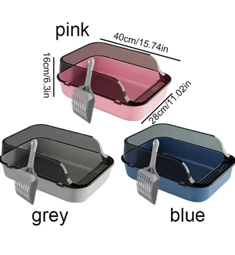 • Cat Litter Box with Cat Litter Spatula Semi-enclosed Sandbox for Cats Rabbit Small Animals Cat Tray Kittens Litter Bedpans