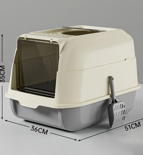 【High Quality Material】: The fully enclosed cat litter box is made of lightweight durable high quality PP material, durable for long serving time, perfect for indoor use.