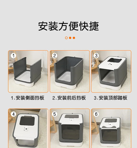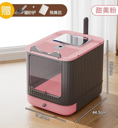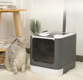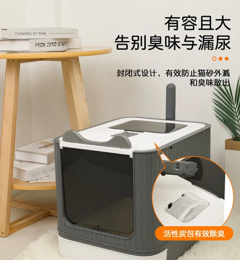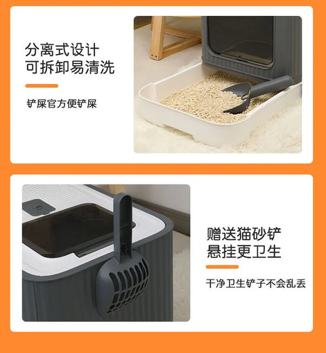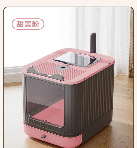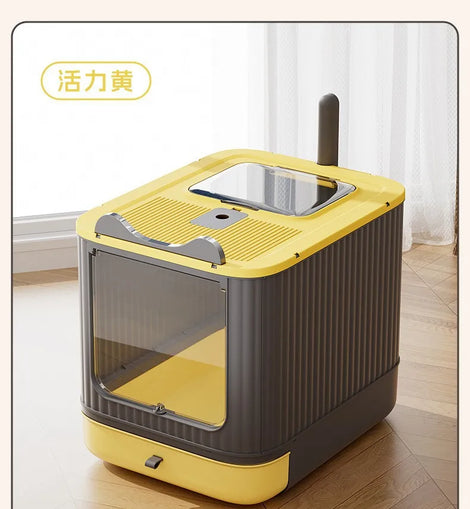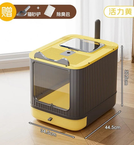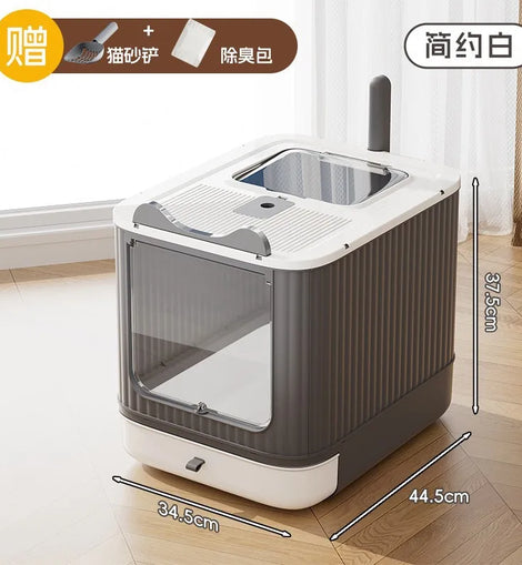 • Extra Large Enclosed Cat Litter Box Top Entry Litter Tray with Drawer Design Anti Splash Hooded Toilet with Odor Sealing