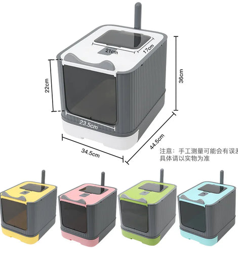 SPECIFICATIONSApplicable object: kittyBrand Name: SINGWEDACapacity: 65LFeature: Totally ClosedHign-concerned Chemical: NoneInstruction manual language: English(You can contact us to send the manual electronically in other)Is Smart Device: Yes,YESIs it intelligent: YesMaterial: Plastic,ABS plasticModel Number: smart cat litter boxNo: Ti ProOrigin: Mainland ChinaPet toilet type: EnclosedSpecifications: Neutral English packaging (British and American regulations),XLType: cats,catsapp language: E...