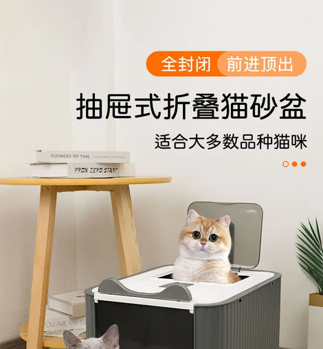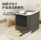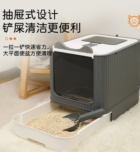 Extra Large Enclosed Cat Litter Box Top Entry Litter Tray with Drawer Design Anti Splash Hooded Toilet with Odor Sealing