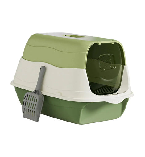 【High Quality Material】: The fully enclosed cat litter box is made of lightweight durable plastic material, durable for long serving time, and perfect for indoor use. Size 50cmx34cmx33cm/19.69inchx13.39inchx12.99inch.