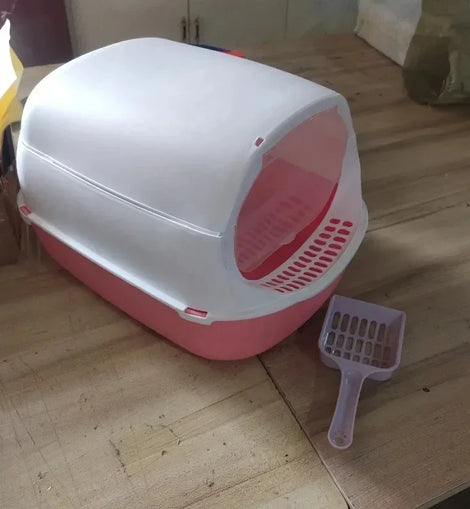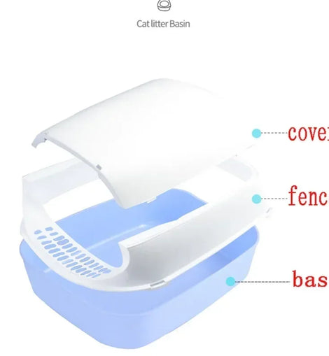 • Kitty Sandbox Cat Litter Box Semi-enclosed Splashproof Cat Tray Cat Toilet Cleaning Basin Supplies Pet Toilet Kitten Tray Bedpan
