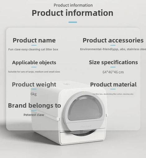 SPECIFICATIONSApplicable object: kittyBrand Name: SINGWEDACapacity: 65LFeature: Totally ClosedHign-concerned Chemical: NoneInstruction manual language: English(You can contact us to send the manual electronically in other)Is Smart Device: Yes,YESIs it intelligent: YesMaterial: Plastic,ABS plasticModel Number: smart cat litter boxNo: Ti ProOrigin: Mainland ChinaPet toilet type: EnclosedSpecifications: Neutral English packaging (British and American regulations),XLType: cats,catsapp language: E...