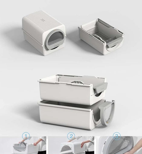 • Litter Box Easy Cleaning Hand-pulled Closed Cat Toilet Semi-automatic Litter Box Pet Cleaning Products Supplies Cat Bedpans