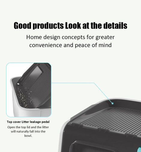 Extra large space litter box, big belly cats will not be suffocated, no need to bow down to poop.