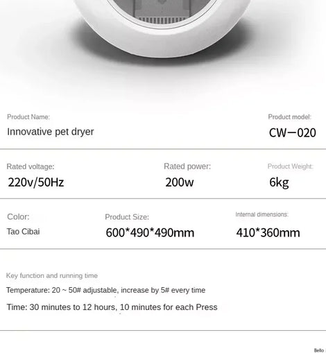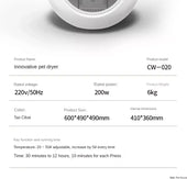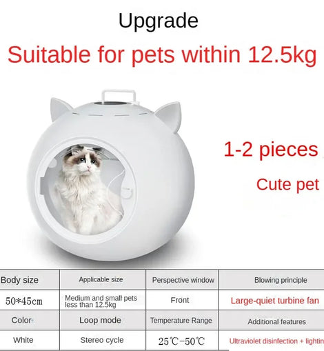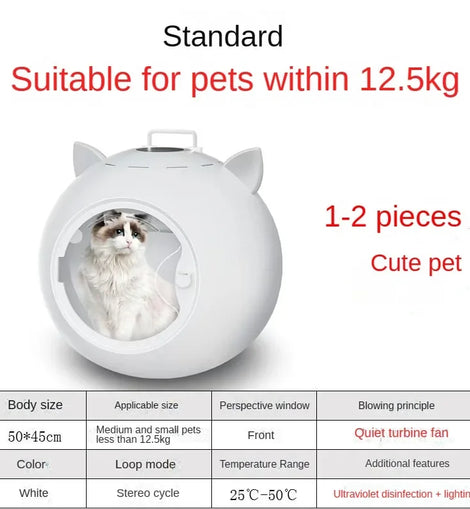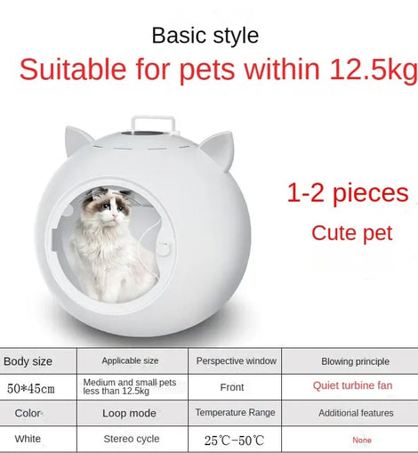• Cat Dryer Smart Pet Drying Box Household Fully Automatic Silent Small Dog Bathing and Hair Blowing Machine Pet Hair Dryer