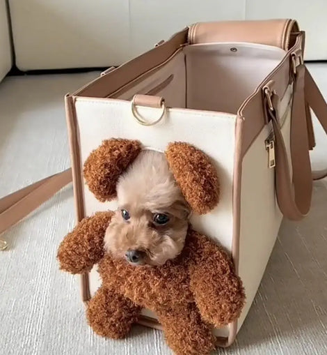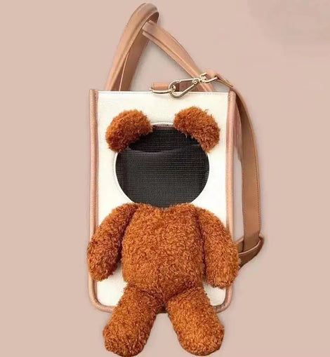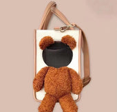1.Eye-Catching Design: Featuring a cute plush bear, ideal for street walking and gatherings, this bag enhances your pet's adorableness and adds fashion to your travels