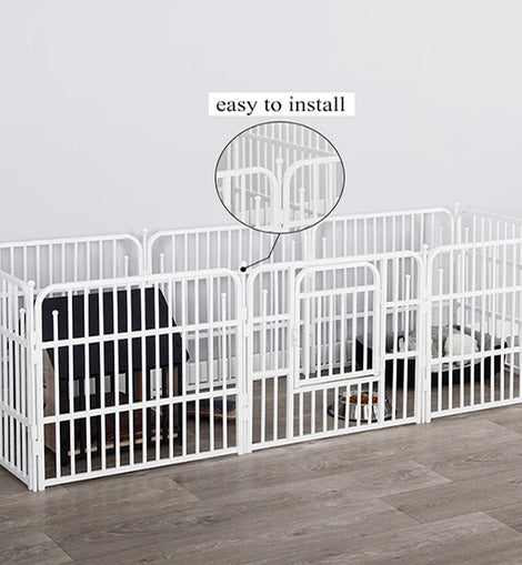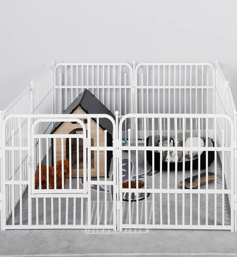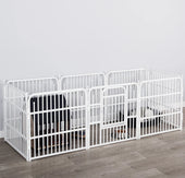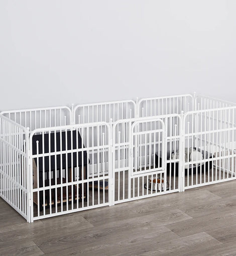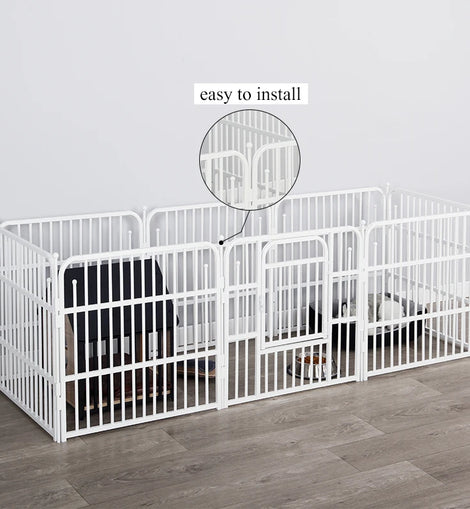 The pet playpen can be placed outside, like garden, courtyard. It is large enough to accommodate multiple animals.
