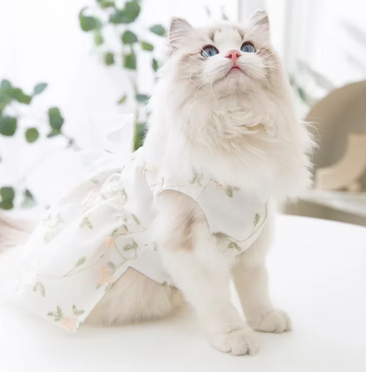 Pet Traction Skirt Lace Cat Dress Princess Dresses Outfit Puppy Clothes Pets Dog Clothing for Wedding Birthday Party Cat Apparel