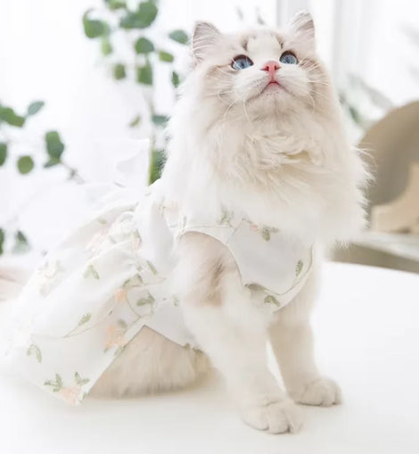 • Pet Traction Skirt Lace Cat Dress Princess Dresses Outfit Puppy Clothes Pets Dog Clothing for Wedding Birthday Party Cat Apparel