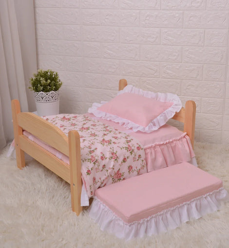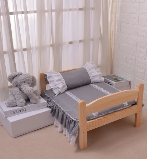 Cute solid wood pet bed dog comfortable bed free full set of bedding