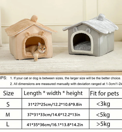 • Foldable Pet House Removable Washable Cat House Puppy Cave Sofa Pet Bed House for Extra Small Dogs and Small and Medium Cats