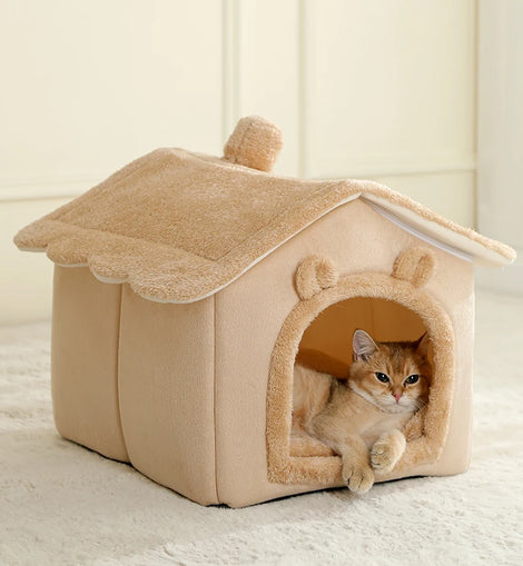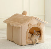 Cat Beds Thickened Enclosed Pet Cat House Bed P...