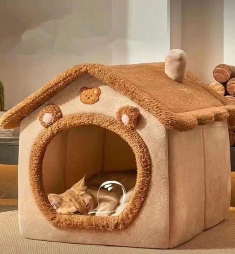Cat Beds Thickened Enclosed Pet Cat House Bed P...