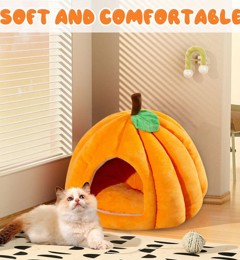 SPECIFICATIONSBrand Name: waasosconHign-concerned Chemical: NoneIs Smart Device: NoItem Type: BEDSMaterial: FiberOrigin: Mainland Chinasuitable_for: pet ownerusage_scenarios: home, indoor Bullet Points:1.Cold Protection: Our enclosed pumpkin cat bed provides a safe and secure space that protects your pet from cold air. Its warm and cozy interior space ensures that your furry friend can snooze or play in comfort while enhancing privacy 2.Pumpkin Shape for Creative Fashion: Not only is it cute...