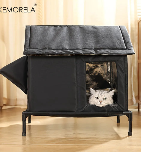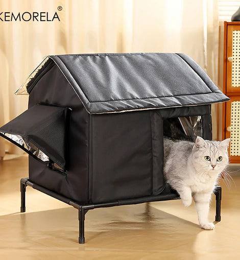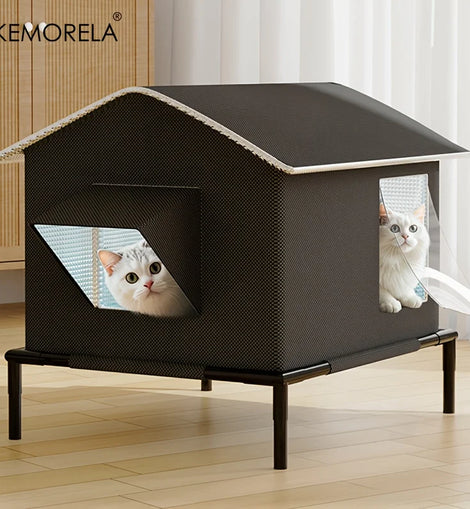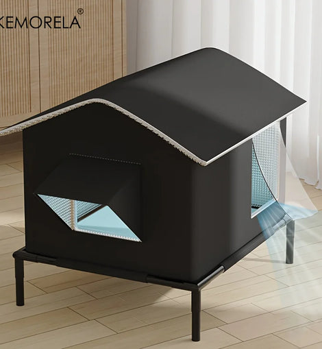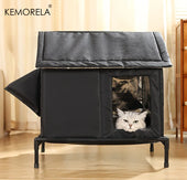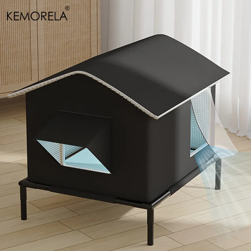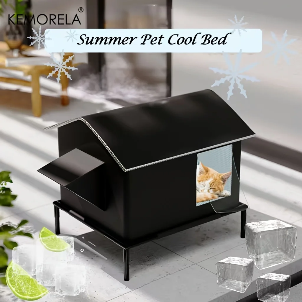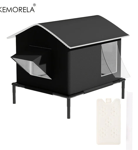 KEMORELA Elevated Pet House-Bed with Cooling Pads, Moisture-Proof Design for Indoor/Outdoor Use, Fits Small/Medium Pets