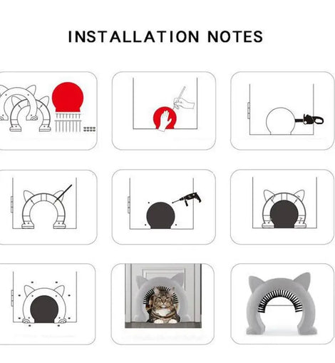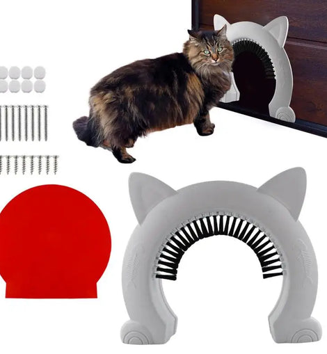 Bullet Points:1、High-quality ABS Material: Our cat door is made of sturdy and environmentally friendly material, which is durable, weather-resistant, and smooth. Safe to use.2、Come with Brush: Due to a self-contained brush design, our cat door can caress and scratch your cat with every pass and collect loose cat hair. Improve the hygiene of your home. 3、Private Access For Your Cat: Due to a cat-like appearance design, our cat door can attract pets and give your cat unlimited access to her personal spaces even when the human door is closed.4、Applicable Scene: Our high-quality cat door is not only for interior doors and exterior doors but also for walls, windows, cupboards, glass, bathroom doors, etc.5、Easy to Install: This cat door with a simple structure just needs to install following the explanation. Only take a few minutes to finish without additional tools required.Features:1. With clips to caress and scratch your cat with every pass.2. Simple design looks like a cat, it is a good partner for your door.3. Gifts for friends, family, birthday gifts, and pet gifts, especially for cat owners at home.Specification:weight:L: 216gXL: 371gPackage dimensions:L: 27.5*23.5*7cm/10.83*9.25*2.76inXL: 33*27.7*7cm/12.99*10.91*2.76inMaterial: ABSColors: White, BlackPacking List:Cat door*1Hole drawing board*1Long screw*8Short screw*8Screw cap*8