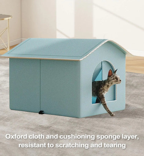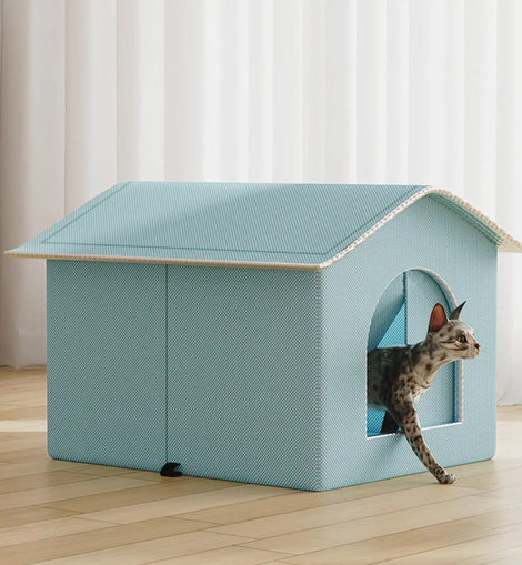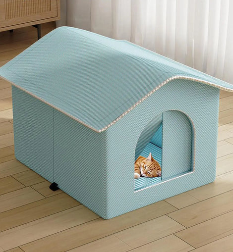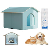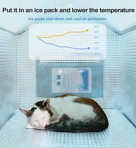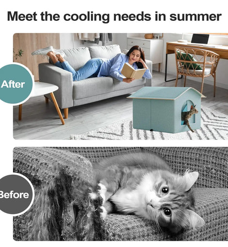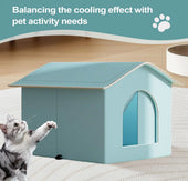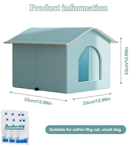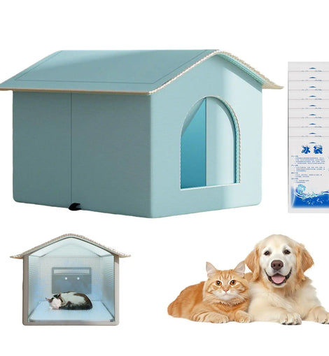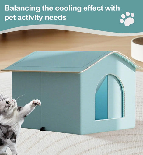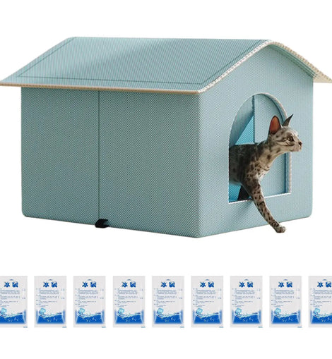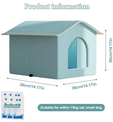 Bullet Points:1.Advanced Temperature Control: The aluminum foil layer combined with a fully enclosed design supports stable internal temperature regulation, offering dependable and enduring thermal control in various conditions 2.Sturdy and Safe Cooling: Scratch-resistant Oxford fabric ensures longevity while safe physical cooling technology and freeze ice packs offer comfort without risks, preventing pets from chewing effectively 3.Spacious Comfortable Space: Built using scientifically tested cold-retaining materials and offering expansive space, it delivers dependable comfort throughout the year, catering to cats' instinctive need for safe and soothing environments seamlessly 4.Convenient Use Design: Engineered for ease of use, the combination of aluminum foil lining and a removable fabric cover helps block odor retention, ensuring cleanliness and comfort for pets 5.Flexible Pet Environment: Built to suit diverse settings, the cooling cat shelter includes a waterproof inner lining and secure enclosed design, making it ideal for multi-pet use while guarding pets from dampness and unpredictable climate conditions Crafted as a must-have pet supply, the Cooling Cat House is suitable for all seasons, offering a spacious and comfortable nesting space for kittens and cats of small to large sizes. Its effective insulation keeps the interior cooler, ensuring a relaxing retreat for your pet. Specifications:Product material: aluminum foil, Oxford cloth, spongeProduct weight:S: about 370gM: about 430gProduct size:S: about 33x33x33cm/12.99x12.99x12.99 inchesM: about 36x36x36cm/14.17x14.17x14.17 inchesPacking List:1x cat cooling house9x ice packs1x double-sided nest matNote:Due to different lighting and screen settings, the item color may be slightly different from the picture.Due to different manual measurements, please allow a 1-2cm difference in size.