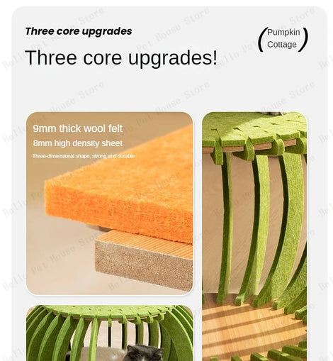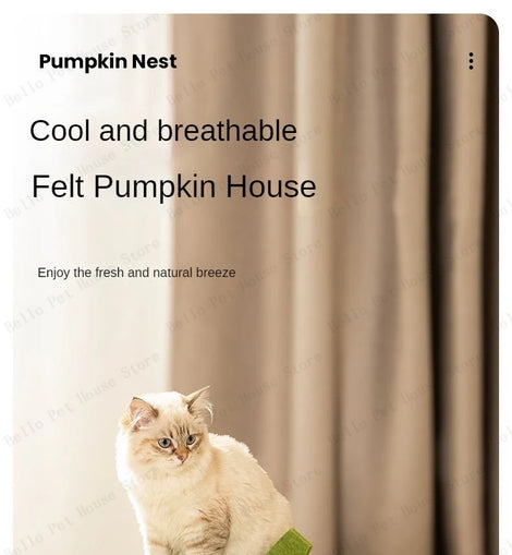 • Pumpkin House Felt Cat Nest Fresh and Breathable Cat Bed Semi-enclosed Summer Pet Nest Practical Pet Furniture cat bed