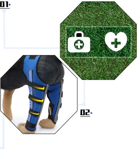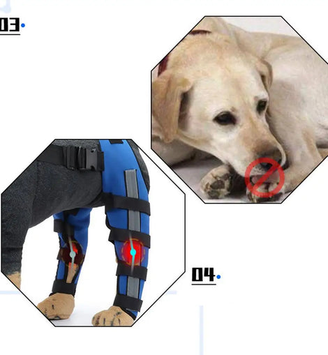 Bullet Points:1.Multiple Applications: This knee brace aids dogs with hip dysplasia and ligament injuries, facilitating their time to health and mobility, and it comes into wide use 2.Endurable Material: Fabricated from sturdy and lightweight material, this knee brace assures normal daily walks or rehabilitation for your dog. It provides protection and breathability, preventing skin discomfort, while allowing your pet to maintain their regular activities effortlessly 3.Easy Use: Ideal for elderly dogs or those with high activity levels, this knee brace helps reduce joint pressure and accelerates recovery of leg injuries, stabilizing joints and muscles for easier walking and exercise 4.Nice Fit Solution: Adjust the brace's strap easily, offering a comfortable and stable support effect tailored to your dog's unique size and breed, ensuring long-lasting wear without any discomfort5.Multiple Functions: Engineered to conform to your dog's leg shape, this versatile brace provides added stability and enhanced support, facilitating a quicker recovery process and safeguarding against further injury Help your furry companion with our Dog Leg Braces for Back Leg, suitable for elderly or highly active dogs. Stabilize injured legs without hindering normal activities, offering supportive comfort for long-term wear.Specification:Name: Dog Knee BraceMaterial: Styrene Butadiene rubberWeight: M: about 307g, L: about 389gDimensions:M: about 32x19x4cm/12.6x7.48x1.57 inchesL: about 40x20x4cm/15.75x7.87x1.57 inchesPacking List:1* Dog Knee Brace