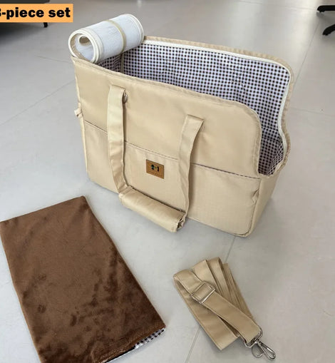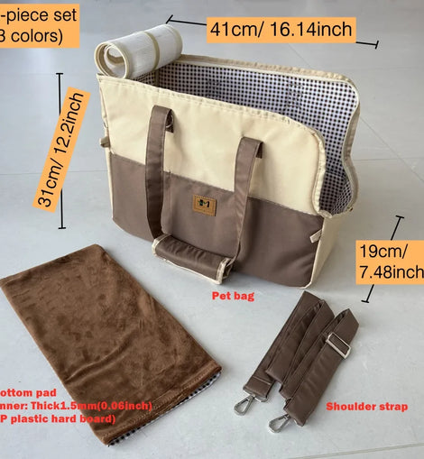 Package: 3-piece set (pet bag+PP plastic pad+shoulder strap)