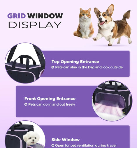 • Best For: Short trips (vet visits, car rides); Daily outings (shopping, errands, walking); Travel transit (compatible with luggage handles)
