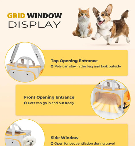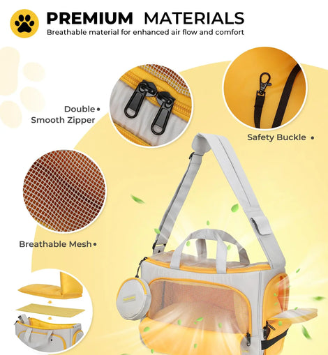 Feature: Breathable,Airline Approved, Three-Sided Breathable Mesh, Multiple Entrances, Foldable & Portable, Adjustable Shoulder Strap, Easy to Clean