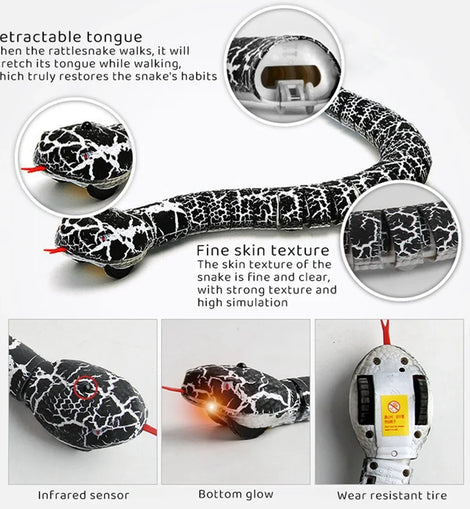 1. Turn on the switch on the bottom of the rattlesnake (the section below the head).