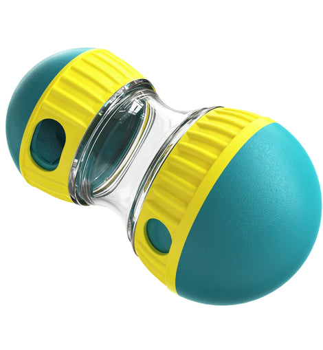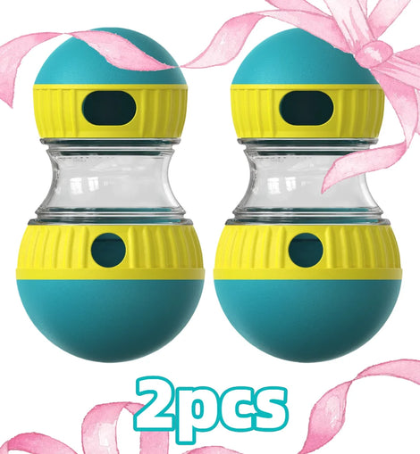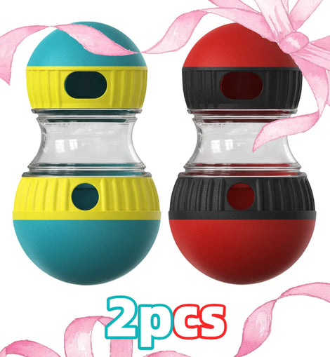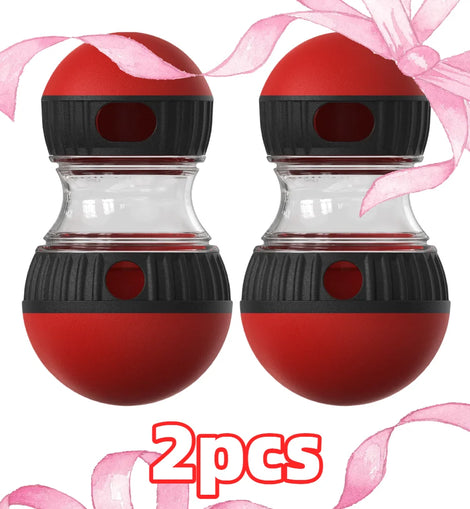 2. [Adjustable food dispensing function] Each of the two spheres with a food dispensing switchmaking it suitable for various sizes and types of pet dry food, jerky, or snack biscuits.