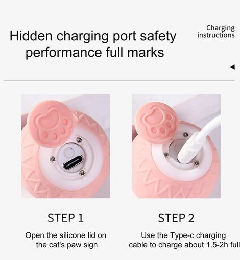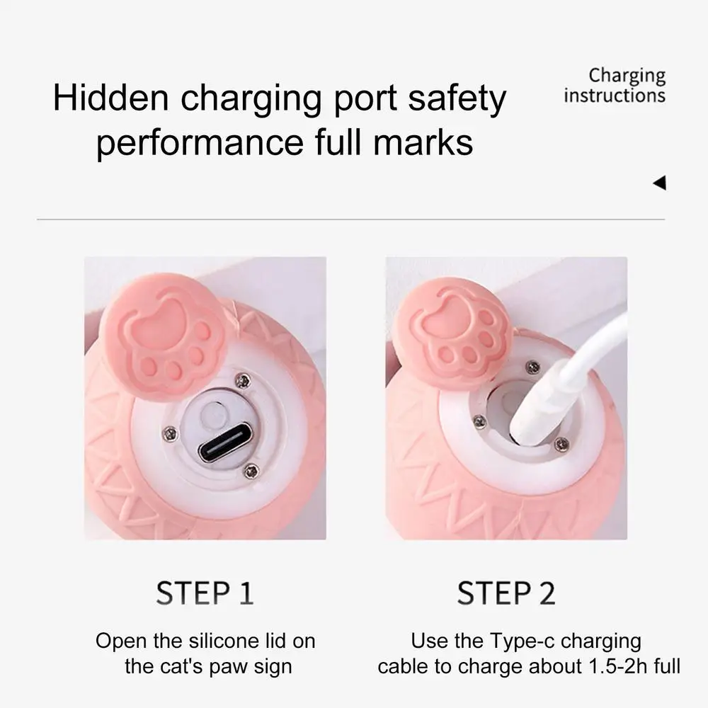 5.Continuous entertainment: Your feline will endlessly enjoy this rolling smart ball that provides continuous amusement. With its rechargeable design and built-in charging power supply, there's no need for frequent battery replacements.