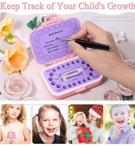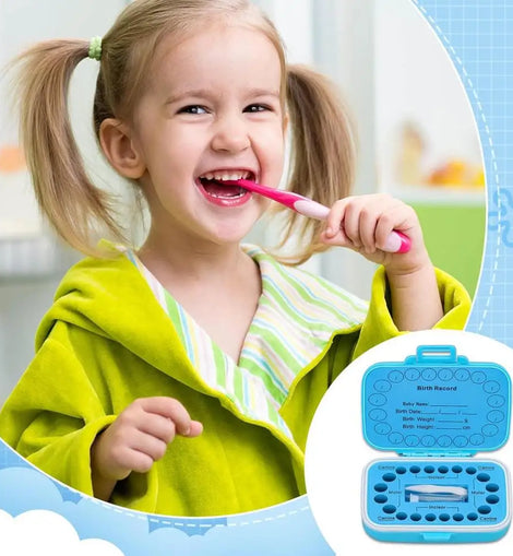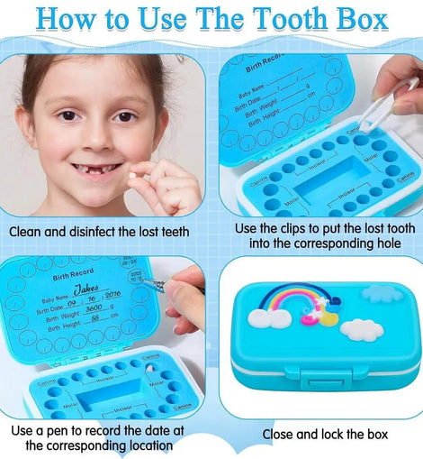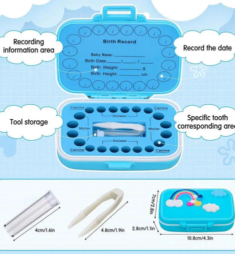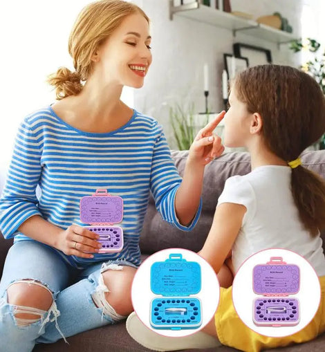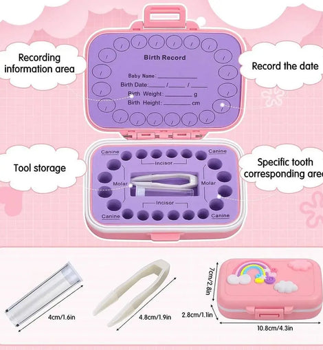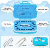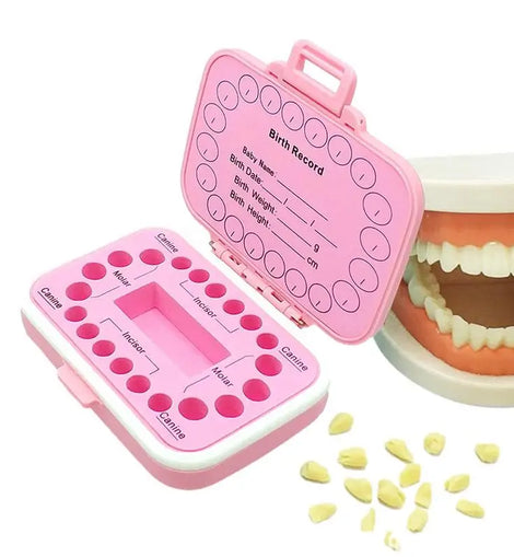 Our tooth storage box is safe to use and features a large groove in the middle for storing tweezers. The design prevents teeth from sliding when opened and includes space to record the date and year each tooth was lost. No need to worry about losing teeth with our reliable storage solution.