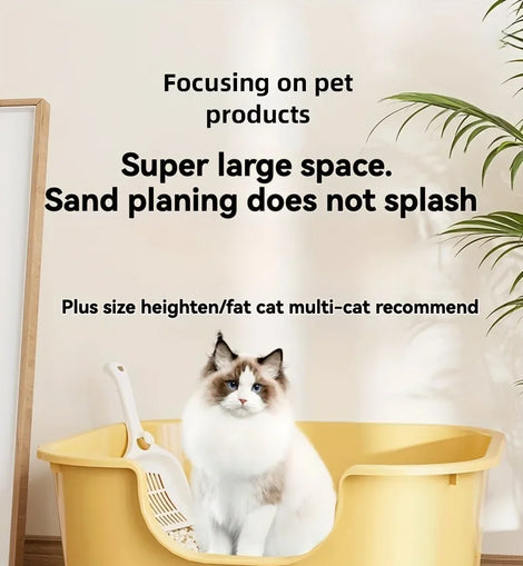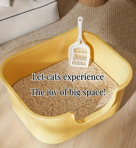 Cat Litter Box with Large Splash Proof Open Design and Free Shovel Suitable for Those Weighing Less Than 30 Pounds