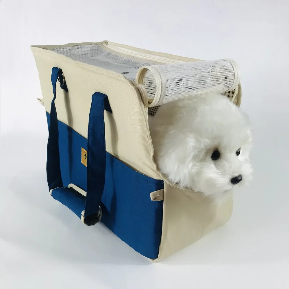 • Pet Car Seat Portable Cat Bag Going Out Dog Bag Breathable Pet Satchel One Shoulder Crossbody Canvas Backpack