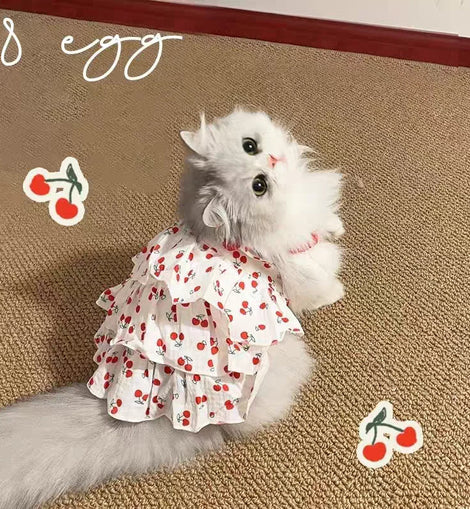 • Pet Dress for Dogs & Cats - Layered Cake Style Printed Clothes, Small Medium Breed Apparel, Adorable Summer Outfit