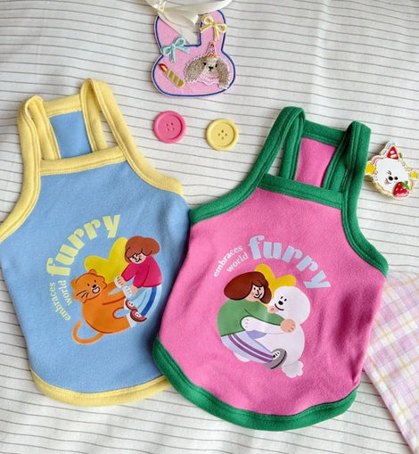 • Pet Dresses Thin Strap Dogs Vest Comfortable Fabric Printed Design Puppy Camisole Breathable Soft Small Dog Cat Dress Puppy