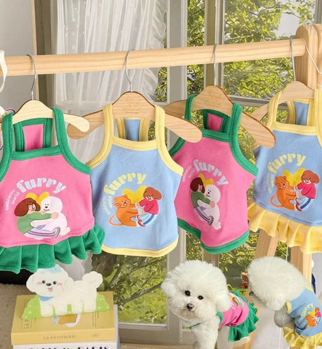 Pet Dresses Thin Strap Dogs Vest Comfortable Fabric Printed Design Puppy Camisole Breathable Soft Small Dog Cat Dress Puppy