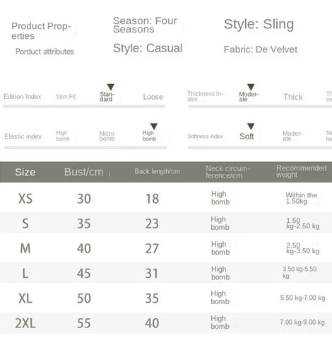 Package includes: 1pc Pet Clothes Size information (CM)