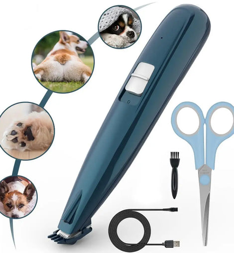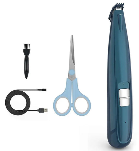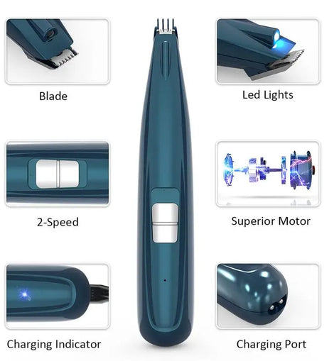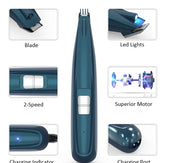This is a foot hair device with LED lights. The design of the blade head is R-shaped, which is not easy to scratch the skin. The ceramic blade is sharp and suitable for trimming small areas of pets.