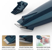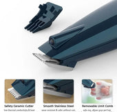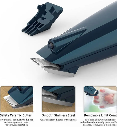 2.[ Safety First ] Inner cutter head was made of ceramic, and will not heat when it’s working, Pet Foot Trimmer has no heat, no burn, and limited comb on the cutter and allows your pet's hair to be shaved uniformly, safe to use, upgraded cutter head, more safety.