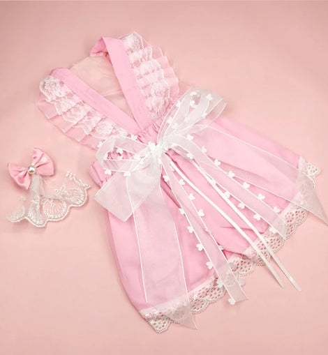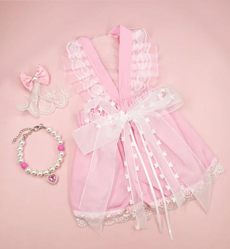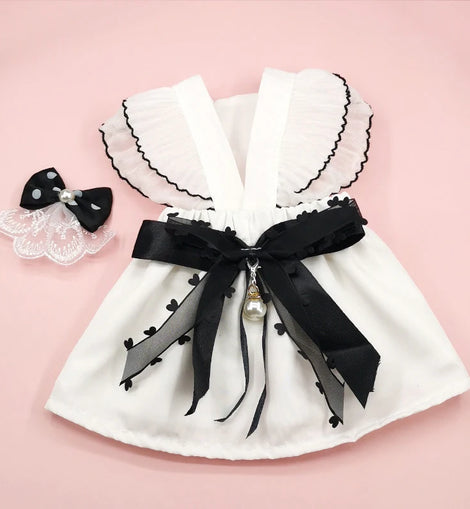 • Pet White Wedding Dress Dogs Skirts Teddy Yarn Skirt Female Dog Dress Cat Princess Dress With Headflower Necklace Pet Costume