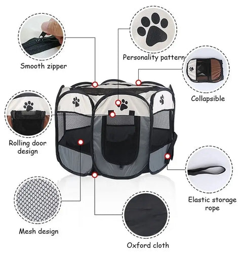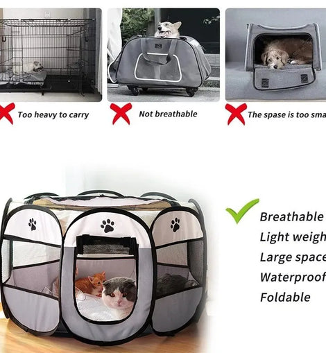 • Gemakkelijke bediening:Met zijn eenvoudige ontwerp is deze huisdierentent ongelooflijk gemakkelijk te gebruiken, zelfs voor degenen die geen ervaring hebben met het opzetten van hekken voor huisdieren.