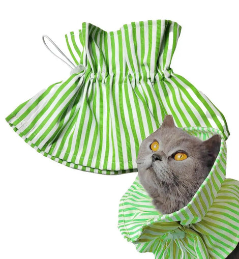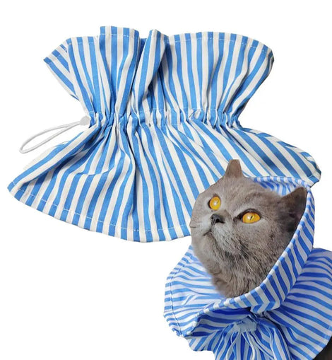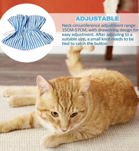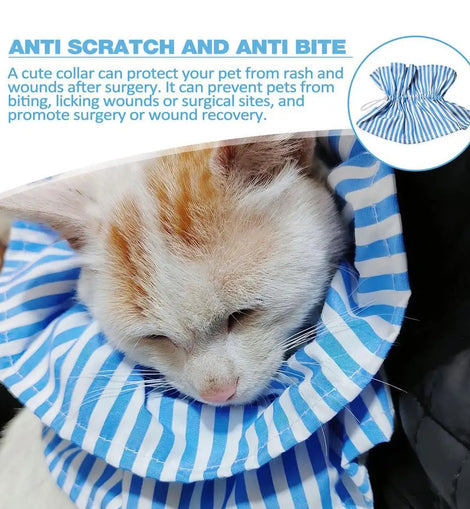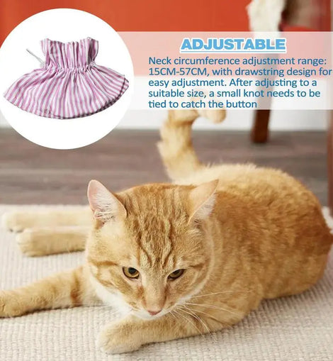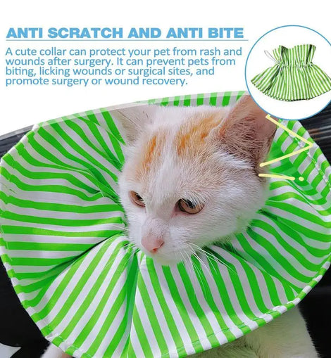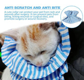 4.Washable and Durable: This Elizabethan collar for cats prevents your cat from scratching its wounds or stitches. It has a stripe design that gives your cat a cute and trendy look. It is washable and durable, and it won't leave any trace on your cat's fur or furniture.