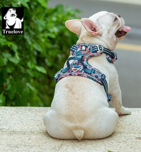 • Truelove Pet Dog Harness Floral No Pull Cotton Fabric Breathable and Reflective Soft for Big Medium Small Adjustable VestTLH5655